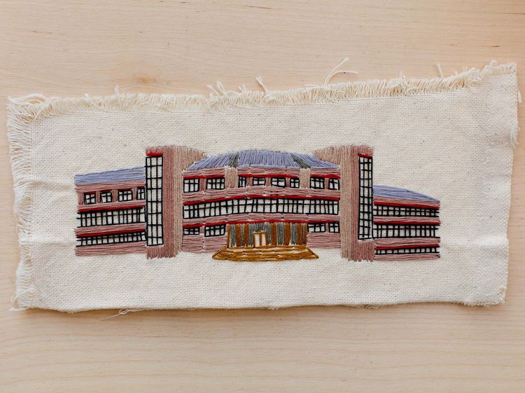 2020-2022. Fabric, hand embroidery, 9x14.5 cm. More about the work: 1930s. The architect is unknown. Harkov city. Not preserved.